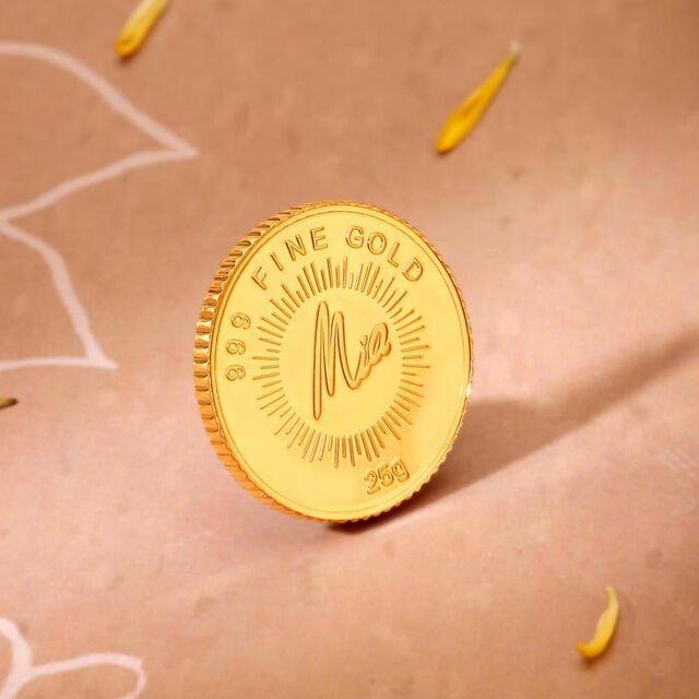 Pick a design that matches the aesthetic preference and story of your recipient. Constantly innovating, brands like Mia by Tanishq host one-of-a-kind designs of gold coins in 24 KT and 22 KT variants. So, go ham and find your person’s golden match.